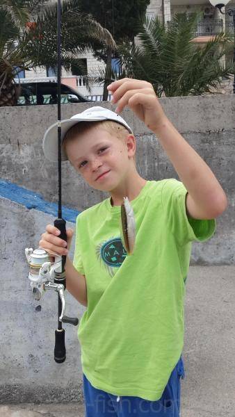 Пошел с детьми рыбу ловить возле отеля. У Макса - три рыбки, у Татьяны - две, остальные мои. на обед наловили.